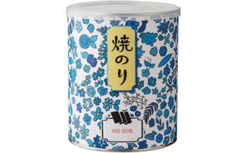 金子海苔店 [創業慶応二年] 有明海産 特選 焼き海苔 8切れ92枚入 (焼きのり 国産) 青い花のギフト缶 贈答品にも