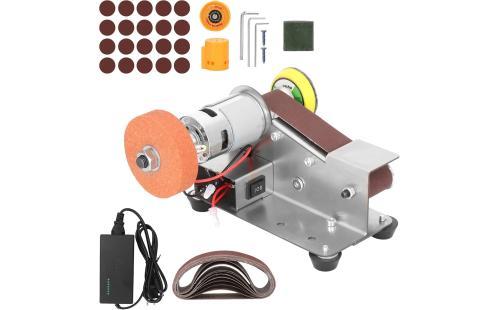 EC Hometecの小型電動ベルトサンダーは、7段階変速と正逆回転モード切替が可能な卓上ミニタイプ。木材や金属、包丁の研磨作業に最適な多機能な工具です。