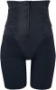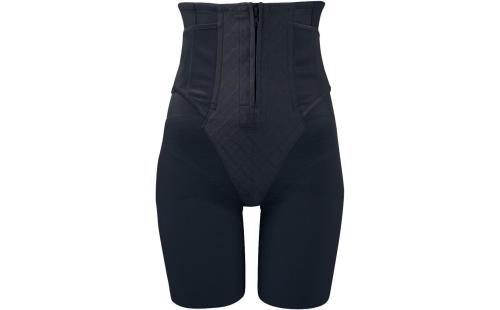 このガードルはパワー素材と裏打ちでおなかをしっかりシェイプし、裾はヘム仕様でアウターにひびきにくい設計です。また、面ファスナーでしめ具合を自由に調節することができます。素材構成はナイロンとポリウレタンで、手洗いのみが推奨されています。