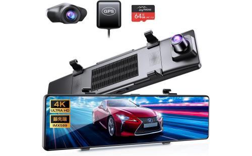 ドライブレコーダー ミラー型 4K高画质 【2024革新型&12インチIPS大画面&64GB SDカード】 ドライブレコーダー 前後カメラ GPS搭載 ドラレコ IMX589センサー ミラレコ 170度広角 タッチパネル HDR/WDR 全国LED信号機対策 地デジノイズ対策 IP67防水リアカメラ 操作簡単 日本語説明書付き : 車&バイク