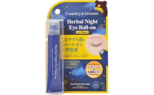 カントリー&ストリーム ハーバルナイトアイロールオンは、ハチミツ、レチノール、乳酸菌エキス配合で、夜間の目元を保湿し、ハリを与えます。
