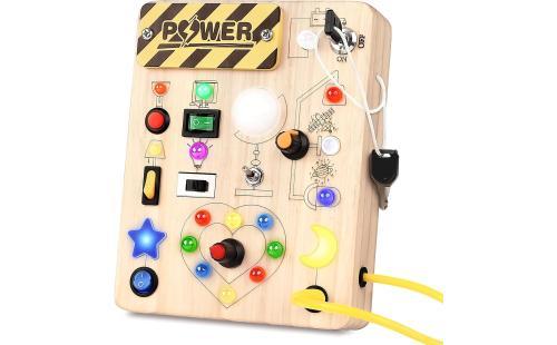 Joyreal モンテッソーリ ビジーボード - LED 知育玩具 1 2 3歳誕生日プレゼント 玩具 男の子 女の子 木のおもちゃ 赤ちゃんおもちゃ 子供のおもちゃ 指先の知育 早期開発 : おもちゃ