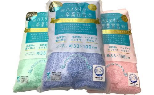 この【まとめ売り3個セット】バスタオル卒業宣言 33×100cm 綿100% 日本製 (エメラルドグリーン×キャンパスブルー×サクラピンク)について質問があります。