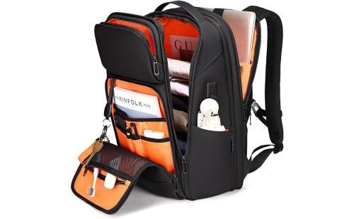 このリュックは大容量であり、17インチのPCも収納可能です。さらに防水性やUSB充電ポートも備えており、ビジネスバッグとして使いやすそうです。