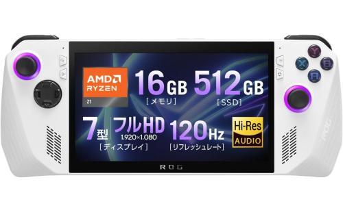 ASUS ゲーミングPC ROG Ally 7インチ Ryzen Z1 メモリ16GB SSD512GB リフレッシュレート120Hz Windows11 ポータブル 重量608g ホワイト RC71L-Z1512 : パソコン・周辺機器