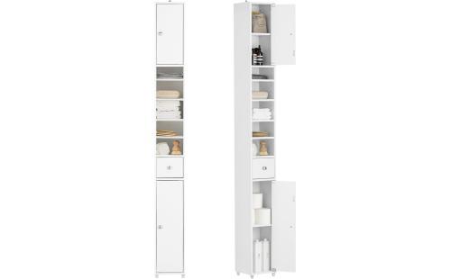 SoBuy 隙間収納 洗面所 収納 ランドリーラック スリム 幅20×奥行20×高さ180cm 可動棚 すきま収納 洗面所用キャビネット サニタリーラック ランドリー収納 キャビネット 食器棚(BZR34-W) : ホーム&キッチン