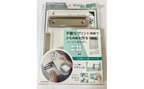 商品の説明: 不要なプリント用紙でメモ用紙を作る「ヨンブンカッツ」が登場。 A4用紙を4分割にカット、A6サイズのメモ紙が作れます。 カット位置がピタッとあうガイド付き、切った紙は挟んでメモパッドに出来ます。