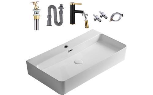 Tinse 洗面ボール 洗面ボウル 手洗い鉢 洗面台 洗面鉢 手洗い器 洗面器 手洗器 浴室洗面台用 おしゃれ 陶器製 スクエア 高級排水金具付き : DIY・工具・ガーデン