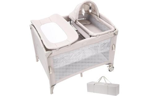 Thinkmax ベビーベッド 折りたたみ 添い寝 揺りかご おむつ交換台 プレイヤード マットレス付き ベビーサークル キャスター クーファン 赤ちゃんベッド クーファン 長く使える プレゼント 出産祝い (ベージュ) : ベビー&マタニティ