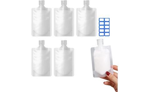 Amazon.co.jp|Mesanda トラベル液体個包装 パウチ容器 袋入り トラベルボトル 詰め替えボトル 小分けボトル 漏れ防止 使い回し 詰め替え容器 クリーム 化粧水 乳液 収納 シャンプーボトル 透明 密封性 5個セット 容量30ml 50ml 100ml 旅行用 出張用 10枚ラベルシール付き (50ml)|旅行用品・旅行小物 通販