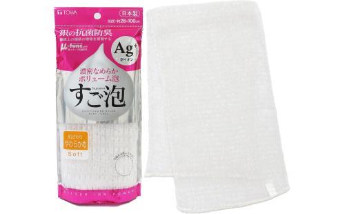 東和産業 ボディタオル すご泡 銀 抗菌 ナイロンタオル やわらかめ ホワイト