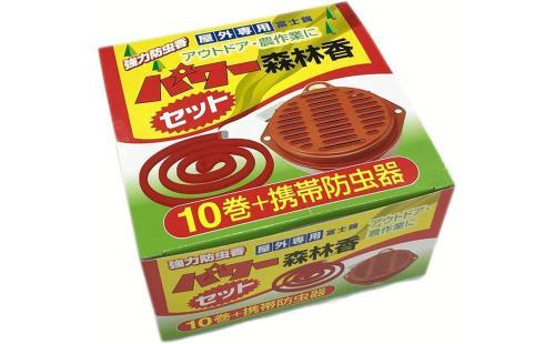 - セット内容:パワー森林香(10巻)、金属製携帯防虫器(腰に装着可能)