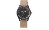 - 視認性の高い文字盤:アラビア数字と太めの針、秒針付きで時間が読みやすい。