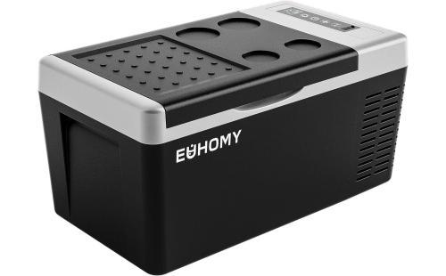 EUHOMYの18Lポータブル冷蔵庫は、車載・家庭両用のコンプレッサー式冷蔵庫。-20℃〜20℃までの温度調整が可能で、急速冷凍にも対応。キャンプや車中泊、災害時の備え、一人暮らしにも活躍する多用途モデルです。