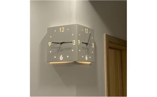 壁時計、 シンプルで静かな個性の家と装飾スチールカットアウトコーナーコーナーサイレント壁の装飾モダンスタイルの クロッククロック (Color : With light E, Size : 26X26X26CM) : ホーム&キッチン