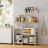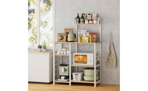Alebert レンジラック レンジ台 大型レンジ対応キッチンラック 高さ142*幅88*奥行39cm キッチン棚 キッチン収納 ラック レンジボード キッチンカウンター 食器棚 ラックを付き 省スペース おしゃれ (木目/白) : ホーム&キッチン