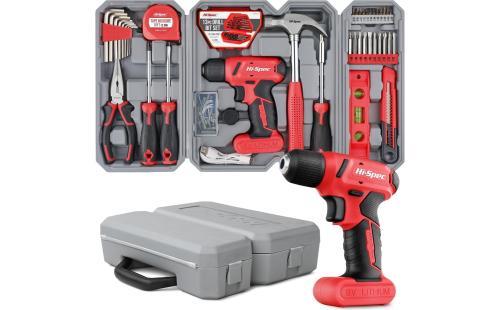 Amazon | Hi-Spec 58点セット 電動ドライバー 付き 工具セット 赤 8V 電動ドリル | 車 DIY 初心者向け 小型 家庭用 ツールセット バイク 便利工具 工具箱 付き | ドリルドライバー