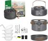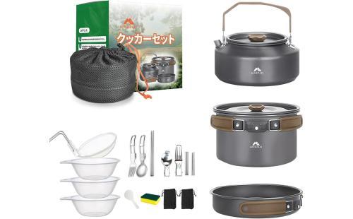 Amazon | Minezaki 15点セット アルミ クッカーセット【2025新モデル キャンプ用品】軽量キャンプ クッカー アウトドア鍋 フライパン ケトル 登山 防災に適 したコンパクトな折りたたみ式 キャンピング 調理器具 収納袋付き フォーク・スプーン・箸付属2-3人用 | Minezaki | コッへル・クッカーセット