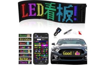 Amazon | JDVOOTD LED電光掲示板 自由編集可能 画像可能 200文字入力可能 【日本語説明書付き】アプリ付き 操作も簡単 小型LEDサインボード 13モード 折りたたみ式 文字/絵/音楽リズム表示可能 LEDディスプレイ 屋台 バー 居酒屋 車 お店看板 (37 X 9.2CM) | 会場サイン・案内板 | 文房具・オフィス用品