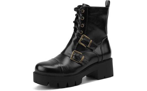 Amazon | [FANIMILA] 厚底 ブーツ レディース パンク ブーツ ショート PUレザー 厚底ブーツ ベルト 歩きやすい 編み上げ サイドジッパー 帅気ブーツ PUNK ショート ブーツ | FANIMILA | ブーツ・ブーティ