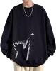 [Bligo] 秋服 メンズ 長袖 トレーナー 丸首 お洒落 ドロップショルダー シンプル ゆったり 大きいサイズ ゆったり カジュアル 快適 軽い 柔らかい 薄手 流行りの服 可愛い ねこ プリント 通学 ユニセックス Black-XL : ファッション