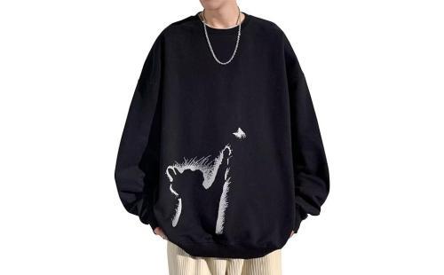 今回紹介するのは、「[Bligo] 秋服 メンズ 長袖 トレーナー」。一見シンプルだけど、よく見ると胸元にちょこんと座る“ねこ”が、なんとも言えない存在感。黒ベースの生地に映えるプリントが、さりげなく個性を演出してくれる。