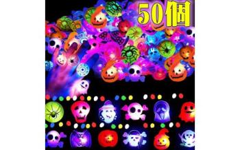 はい、あさとさん。実際にAmazonで販売されている商品で、50個セット、幽霊モチーフがランダムに入っていて、赤と青のLEDでピカピカ光るんです。サイズはフリーサイズで、プラスチック製。ボタン電池内蔵で、届いてすぐ使えるのもポイントですね。