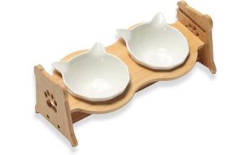Amazon | cat mom 組み立て不要 猫 陶器 食器 スタンド付 ダブル 餌入 食べやすい フードボウル 猫用 犬用 高さ調節 傾斜 食器台 餌台 すぐ使える ミルク色(ホワイト) | cat mom | 食器・ボウル 通販