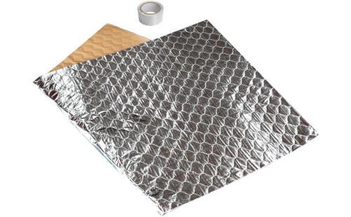 この静音シートは、表面にアルミ層、内側に吸音材を組み合わせた多層構造になっています。アルミが熱を遮断し、吸音材が音の振動を吸収することで、エンジン音やロードノイズを軽減するんです。まさに“貼るだけで静けさ”を実現するテクノロジーですね。