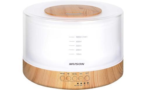 MUSON(ムソン) 加湿器 卓上 超音波式 アロマディフューザー 500ML アロマ対応 花粉対策 静音 タイマー 大容量 上から給水 ナイトライト 間接照明 明るさ調整可 音楽内蔵 空焚き防止 お手入れ簡単 乾燥対策 おしゃれ 木目調 ホワイト 部屋/寝室/会社用 : ホーム&キッチン