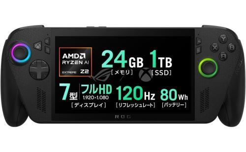 ASUS ゲーミングPC ROG Xbox Ally X RC73XA 7インチ Ryzen AI Z2 Extreme メモリ 24GB SSD 1TB リフレッシュレート120Hz Windows11 バッテリー駆動22.3時間 ポータブル 重量715g ブラック RC73XA-Z2E24G1T : パソコン・周辺機器