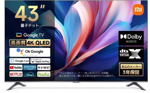 Amazon | シャオミ(Xiaomi) チューナーレステレビ 43インチ 4K 液晶 量子ドット(QLED) HDR10+ Google TV搭載 スマートテレビ Dolby Atmos HDMIポート有 モニター接続可能 MEMC OK Google 音声検索 グーグルキャスト Airplay ネット動画対応 低ブルーライト VESA規格 フルスクリーン 超薄型 A Pro 2026シリーズ | ポータブルテレビ 通販