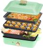 SOLEMOOD ホットプレート 焼肉 たこ焼き 3枚タイプ 多用途 しゃぶしゃぶ グリル鍋 深鍋 焼肉プレート プレート取り外し可能 着脱式ホットプレート 1台多役 A4サイズ 1200W おしゃれ かわいい 温度調節 洗いやすい 1人 2人 3人 用 小型 (プレート3枚-グリーン)