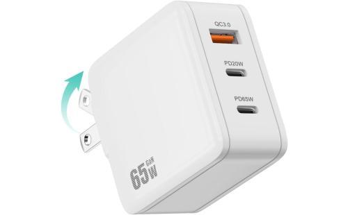 PD USB充電器 65W GaN Type C 急速充電器 高速充電器 PD対応 USB-C×2 & USB A 3ポートGaN(窒化ガリウム) 折りたたみ式プラグ PSE技術基準適合 iPhone/Android/iPad/MacBook/ノートパソコン各種対応 その他USB-C/USB-A機器対応