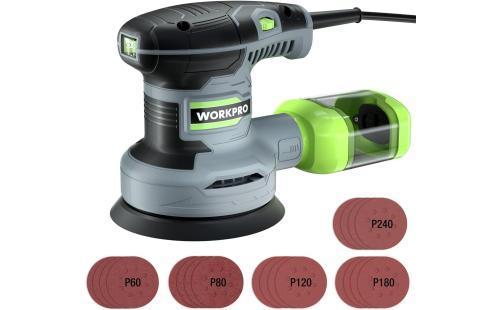 WORKPRO サンダー 電動サンダー ランダムサンダー 300W 13000RPM 6段階調速 高集塵システム マジックテープ式 サンドペーパー20枚 仕上げサンダー DIY日曜大工 木工作業 研磨 仕上げ 荒削り 日本語取扱説明書 PSE認証