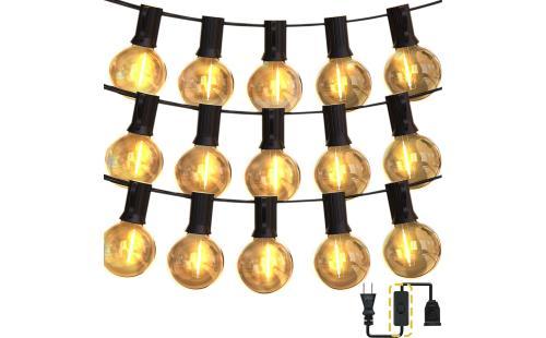 ストリングライト 屋外 延長コード スイッチ付き 22.8m 38個LED電球 E12口金 G40 電球色 PC素材 破損しにくい 屋内照明 クリスマス 誕生日 結婚式 ガーデンライト パーティー電飾 庭 商店街 【適格請求書発行可】
