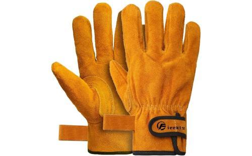 まずは今回の主役、Fieekty 耐熱グローブがどんな手袋なのかをざっくり紹介しておきます。名前のとおり、焚き火やBBQ、薪ストーブ作業など熱いものに触れるシーンを想定して作られたアウトドア向けの耐熱手袋です。耐熱性能は最大350℃と、家庭用オーブンの庫内温度くらいなら余裕で扱えるレベル。素材は厚手の牛革に、内側は綿の裏地つきで、見た目よりも手を入れたときのフィット感が柔らかいのが特徴です。サイズは一般的な作業用グローブより少し長めで、手首までしっかりカバー。焚き火だけでなく、DIYや園芸、さらには熱い鍋を持つキッチン作業まで、1つ持っておくと万能タイプの手袋として“とりあえずこれでいける”存在です。