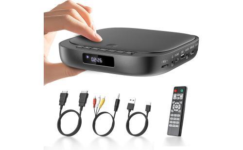ミニDVDプレーヤー1080Pサポート DVD/CD再生専用モデル リージョンフリー CPRM対応、Blue-ray非対応、USB/TFカード再生、HDMI/AV/AUX端子搭載 日本語説明書付き (ブラック)
