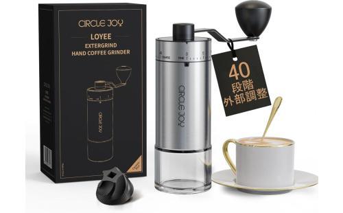 「CIRCLE JOY 手動コーヒーミル」は、いわゆる挽きたての香りを気軽に楽しみたい人向けの手動ミルです。セラミック臼を採用しているので、挽くときに熱がこもりにくく、豆の風味をしっかり守ってくれるのがポイント。さらに、外側のダイヤルで40段階の粒度調整ができるため、細挽きのエスプレッソから粗挽きのフレンチプレスまで、幅広い抽出方法に対応します。