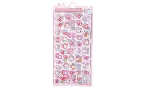 サンスター文具の「ボンボンドロップシール」は、ひと目でかわいいと感じる、ぷっくり立体のデコシールです。柔らかいPVC素材でできていて、指で触るとポコッと弾むような質感が特徴。ツヤっと光る仕上がりなので、貼るだけでページが一気に華やかになります。
