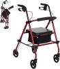 ガービー(Garvee) 歩行器 歩行車 折りたたみ シルバーカー 座れる 歩行補助 7段階高さ調整 座面付き キャスター付き おしゃれ 買い物 ショッピングカー シルバーカート 軽量 介護 高齢者 手押し車 レッド