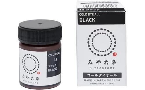 コールダイオール ECO18 ブラックは、桂屋ファイングッズが手がける家庭用エコ染料で、内容量は20gと扱いやすいサイズです。特徴はなんといっても水だけで染められる手軽さで、鍋でグツグツ煮込むような本格作業は不要。ぬるま湯レベルの低温でもしっかり色が入るので、初心者でもハードルが低いタイプです。