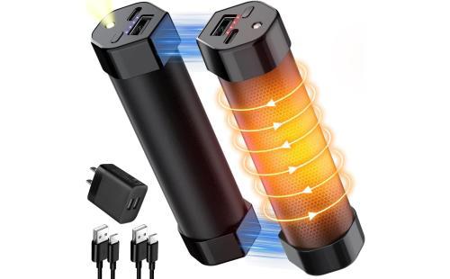 充電式カイロ 360°全面発熱 速熱 4階段調温 最大14時間連続発熱 モバイルバッテリー機能 10000mAh 大容量 懐中電灯機能 電気カイロ マグネット分離式 小型 軽量 おしゃれ 5V/2A急速充電 防災 ギフト プレゼント用 冬の贈り物(Black)