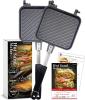 フードコーディネーター監修のレシピ付きで、短時間で焼き上がるホットサンドが楽しめる。軽量でキャンプに最適。フッ素加工でお手入れも簡単。