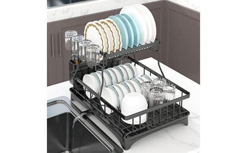 SVOHZAVの水切りラックは、自動排水機能と大容量で食器を効率的に乾かせます。