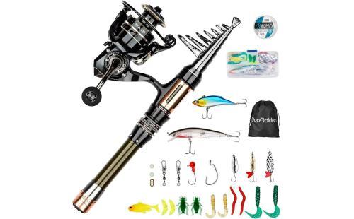 Amazon | DuoGolden 釣竿セット リールセット 2.1m炭素伸縮投げ竿 初心者用 釣り入門 釣り具 カーボン ロッド 磯竿 スピニングリール 200m釣り糸 24点釣り餌 バッグ付き コンパクト 海/川/穴釣り 子供 ギフト | DuoGolden | 磯竿