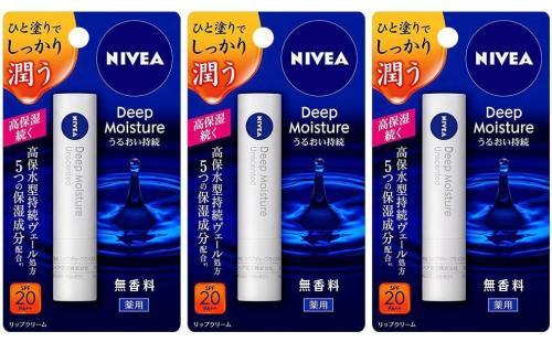 ニベア ディープモイスチャーリップ 無香料【医薬部外品】3本パック : ビューティー