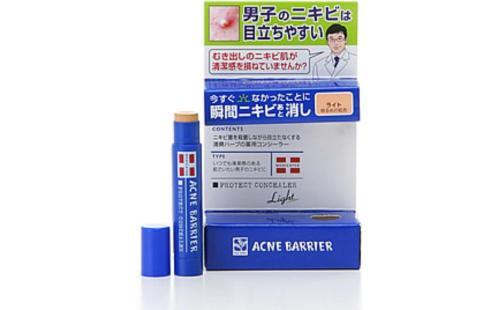 メンズアクネバリア薬用コンシーラーはニキビやにきびあと、青ひげを隠すのに効果があります。このコンシーラーは男性の肌に合わせた自然な肌色でニキビあとをカバーします。さらに、ティーツリーオイル(清涼剤)に薬用有効成分を加え、ニキビ菌を殺菌し、炎症による赤みを抑えてニキビを防ぎます。