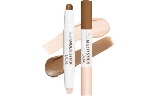 アイムマルチスティックデュアルは、小さなサイズながら密着力とサラサラ仕上がりが魅力。シェーディングとハイライトを1本で実現し、立体的なメイクを楽しめます。
