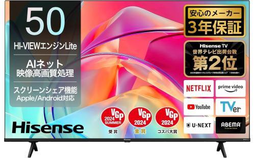 ハイセンス 50V型 4Kチューナー内蔵 液晶 テレビ 50E6K ネット動画対応 HDMI2.1対応 低遅延ゲームモード 3年保証 2023年モデル